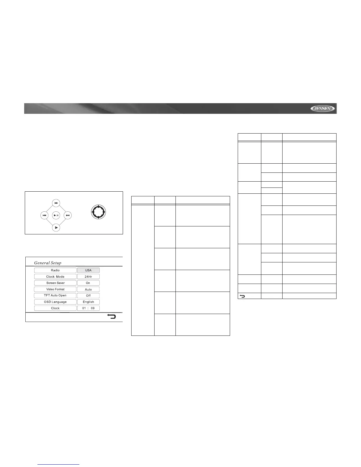 To access the “GENERAL SETUP” Menu, press the direction