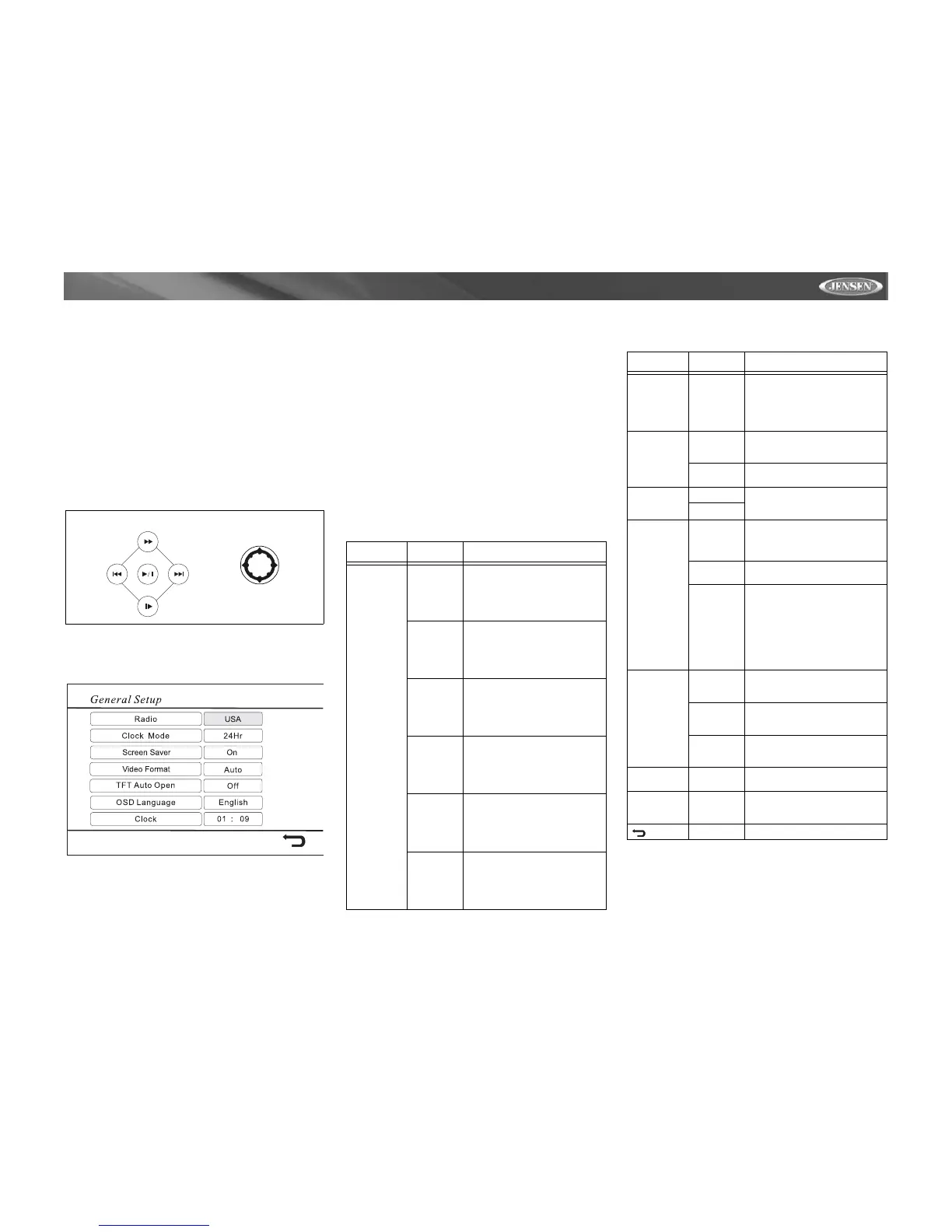 Pour accéder au menu « GENERAL SETUP » appuyez sur les boutons