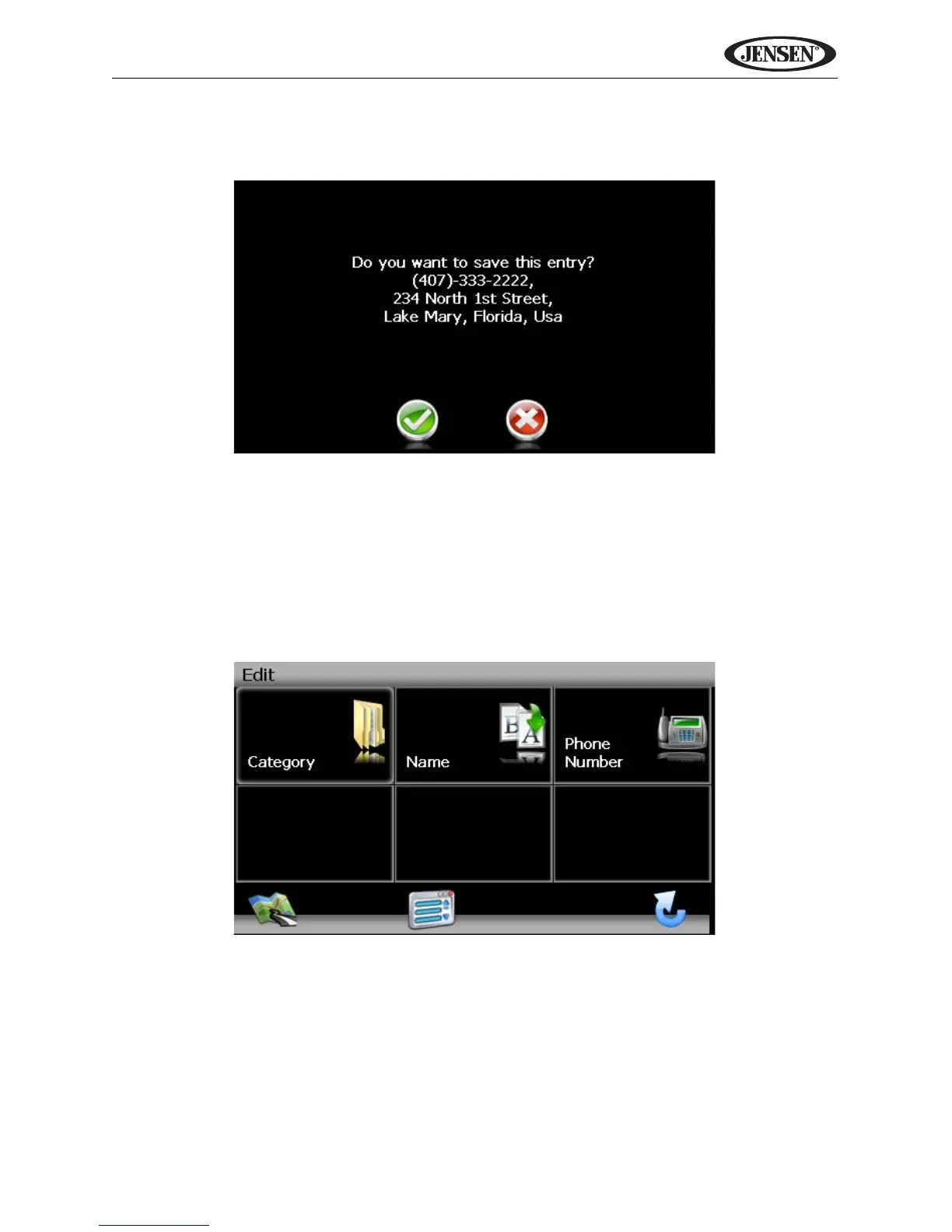 4. Press the green check mark to save your POI entry. A confirmation screen