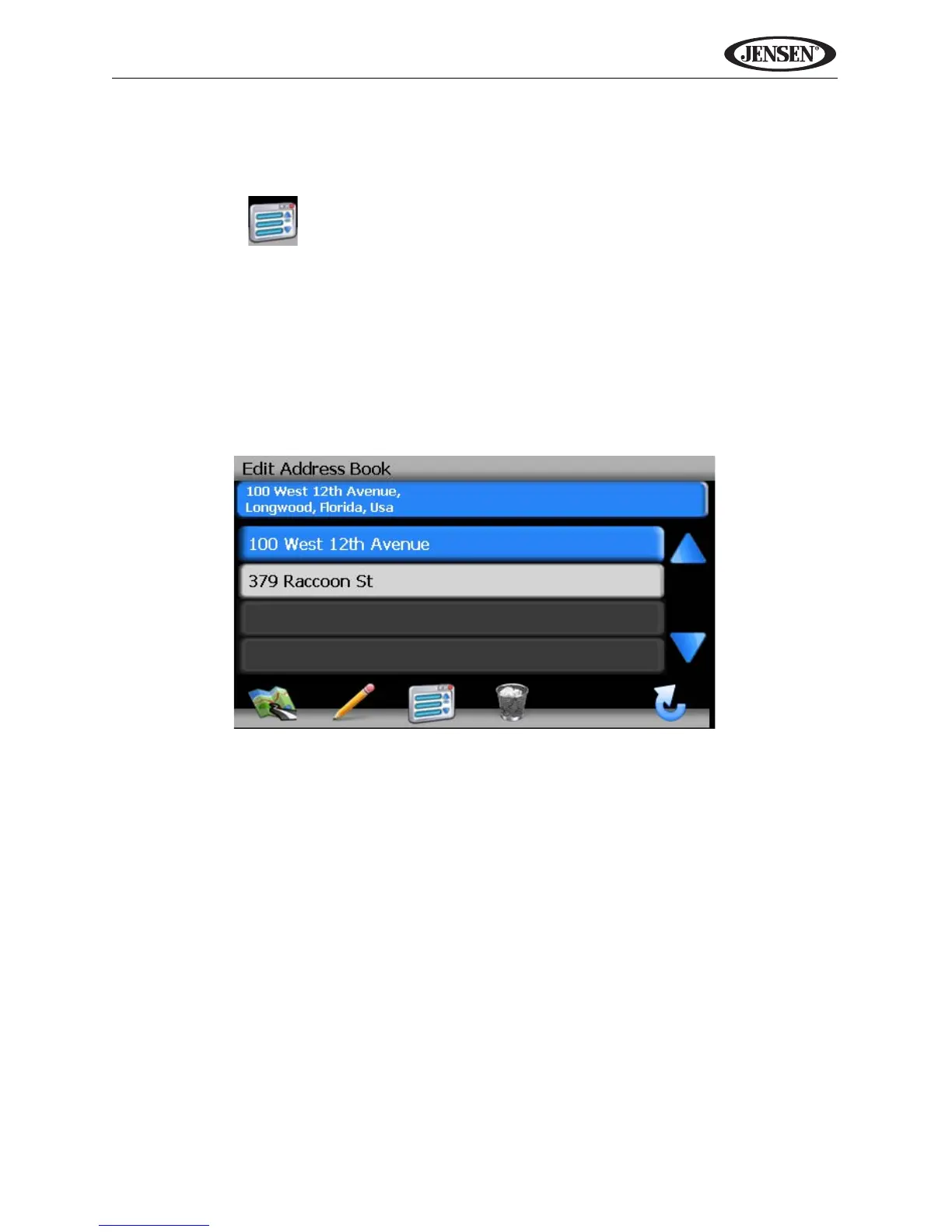 • Press the trash can icon to delete the highlighted address book entry.