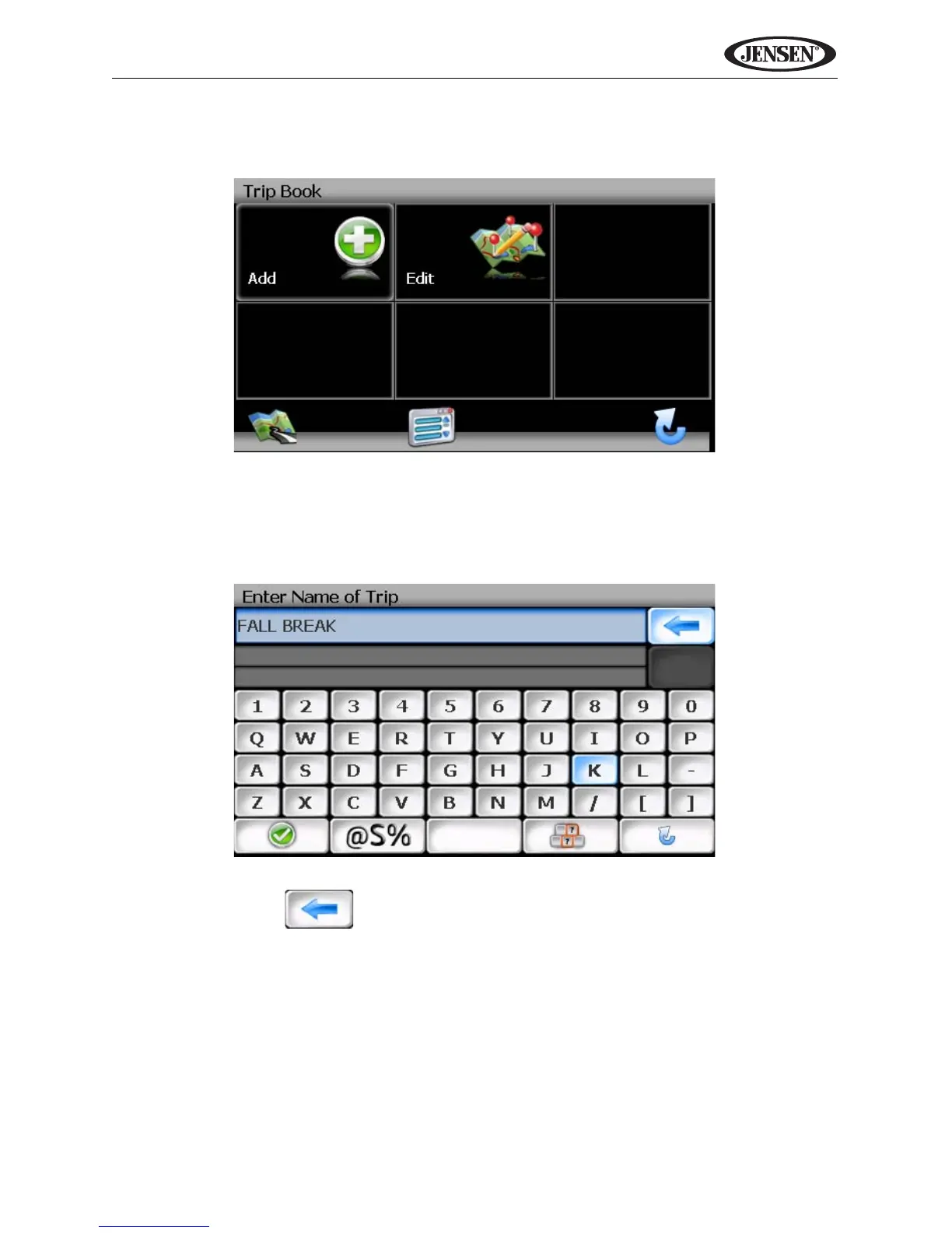 Use the keyboard to enter the name for your Trip. (See “Using the
