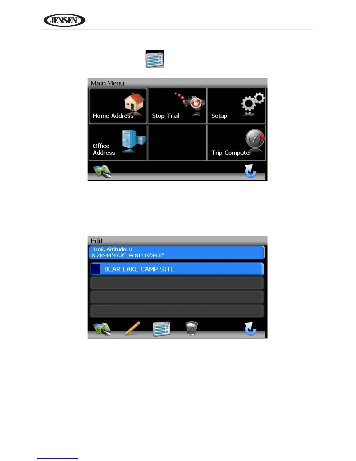 1. To edit an existing Trail press the following sequences of menu buttons: