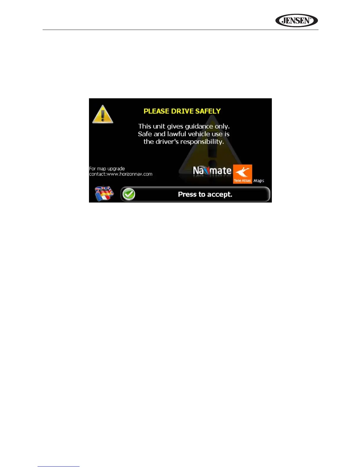 You must agree to the above notice before using the navigation software.