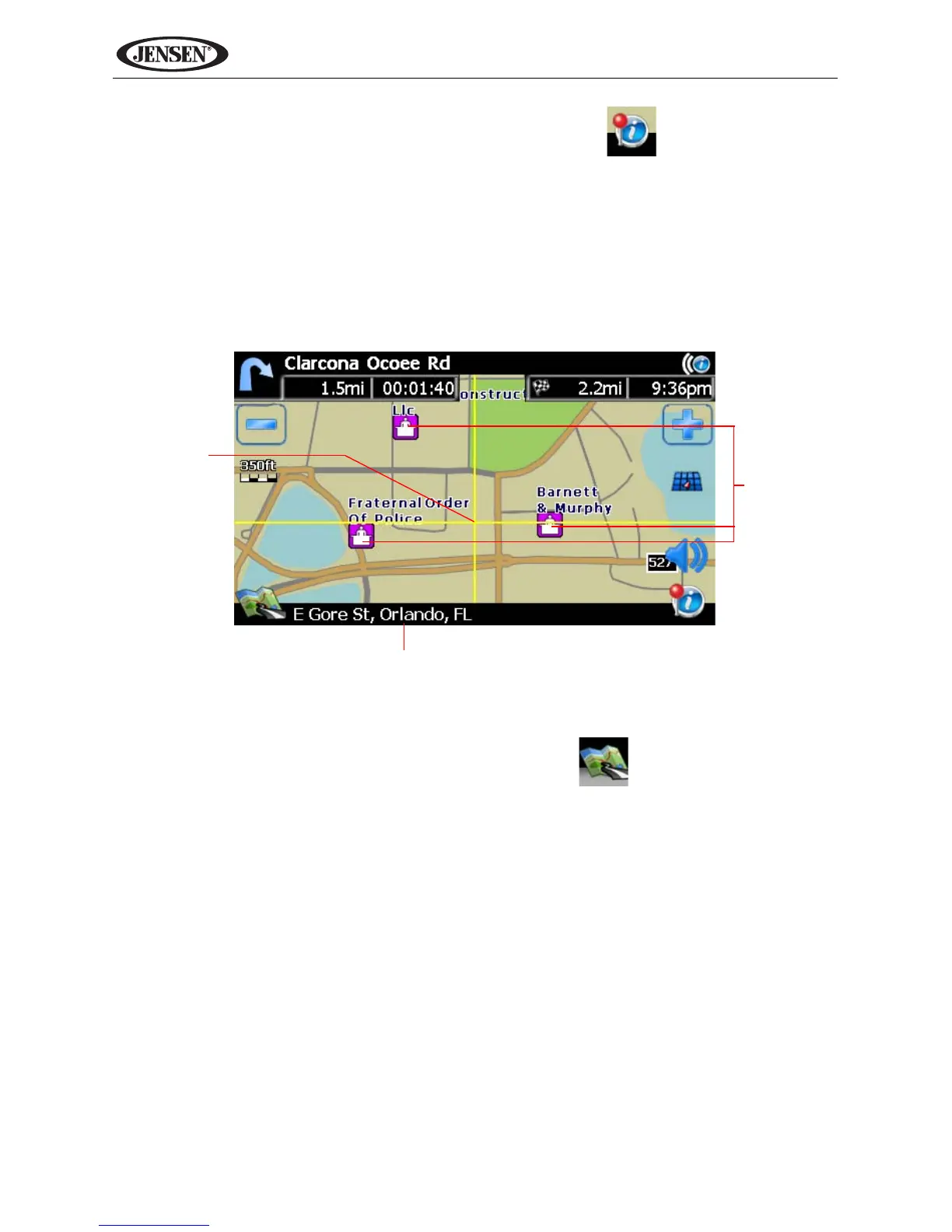 • To add a POI destination to your route, press the button.