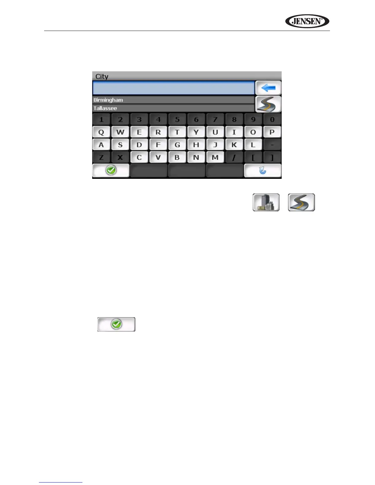 1. Begin entering the city by typing the City name or Postal Code. The navi-