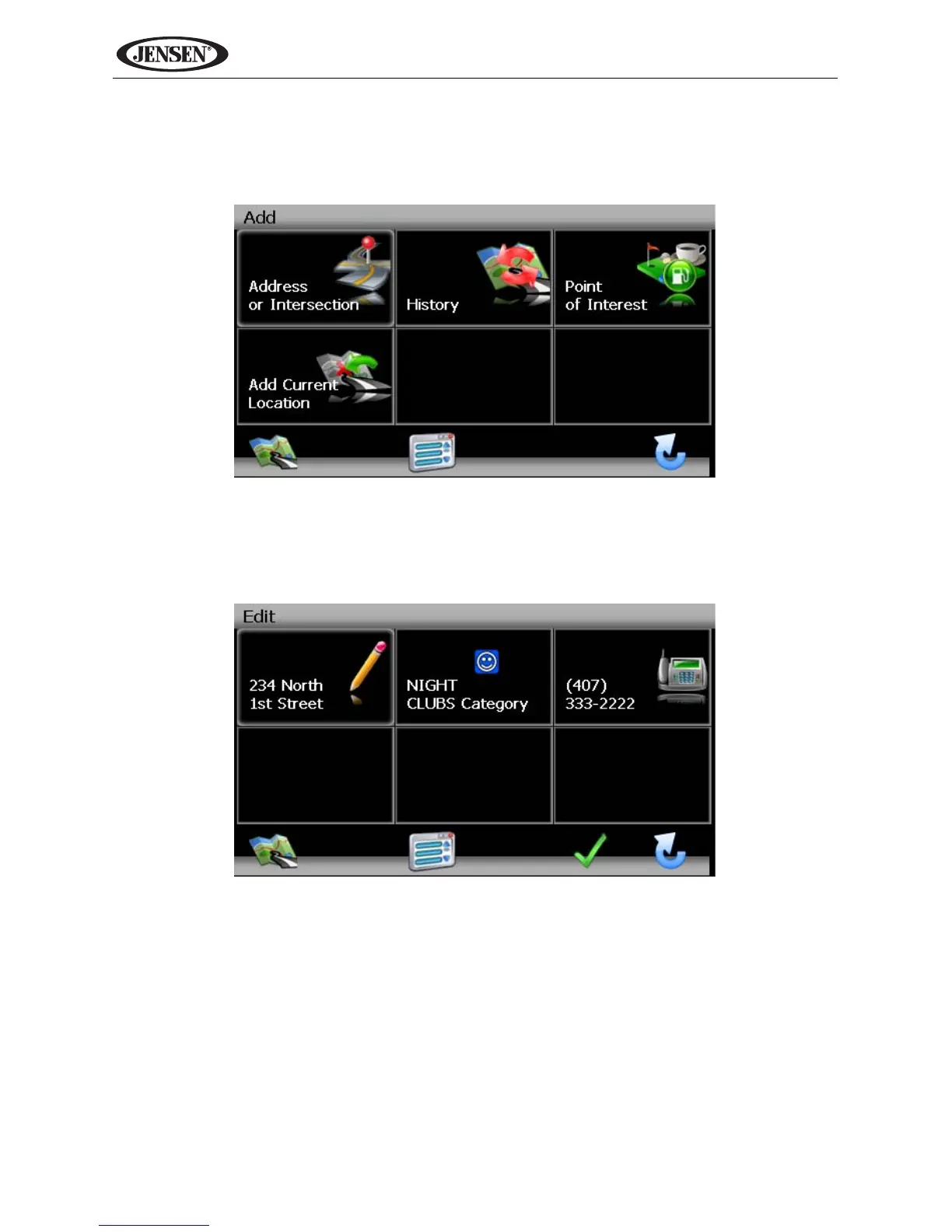 1. To add a destination to a My POI Category, press the following sequences