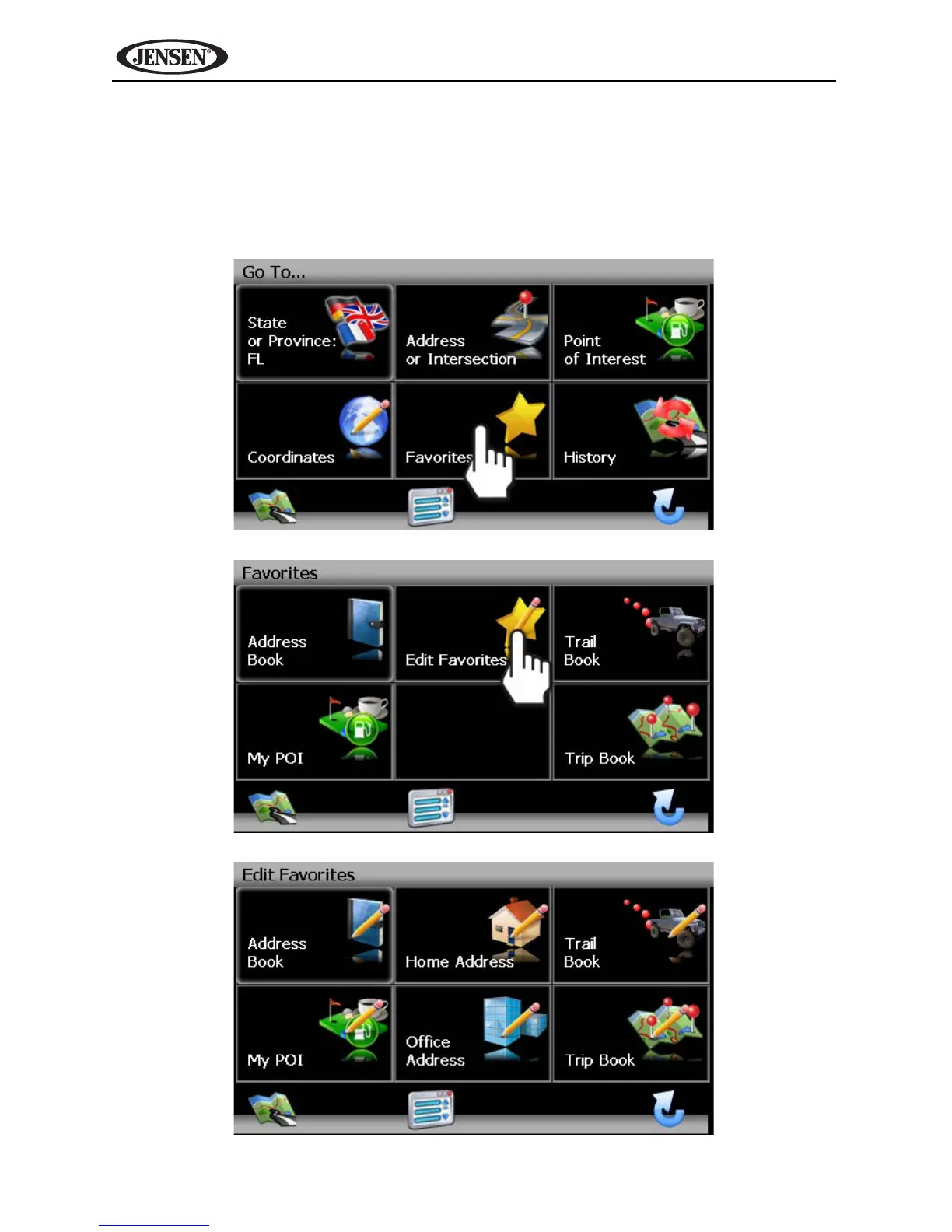 Jensen VM9424 - MANAGING FAVORITES; Favorite Location Management