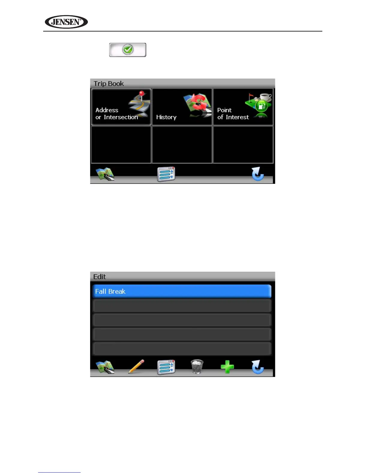 2. Press to highlight the Trip you want to modify. The “Edit” screen appears.