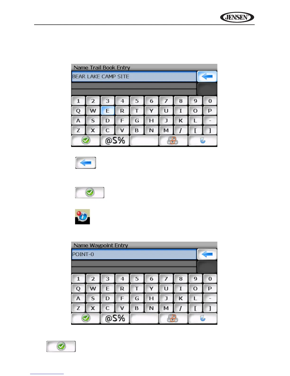 2. Use the keyboard to enter the name for your Trail. (See “Using the