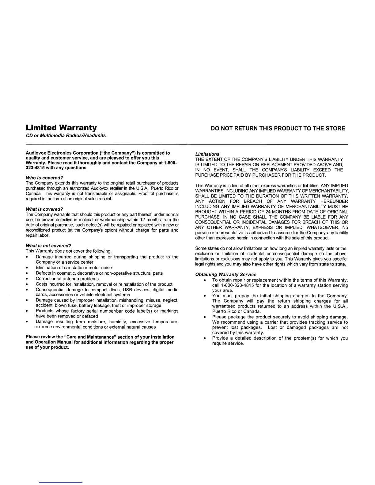 Warranty. Please read