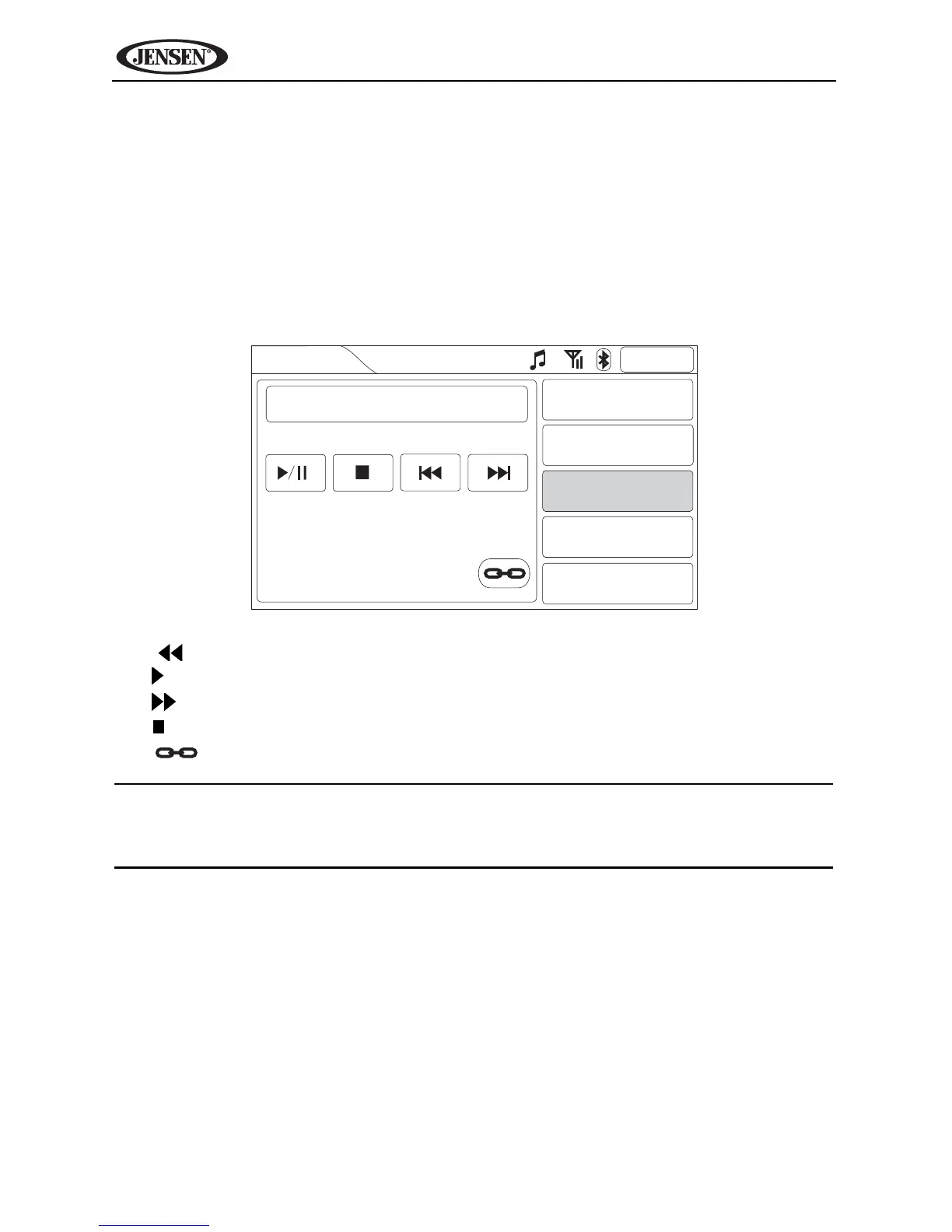 completed, the music function appears again and playback resumes.