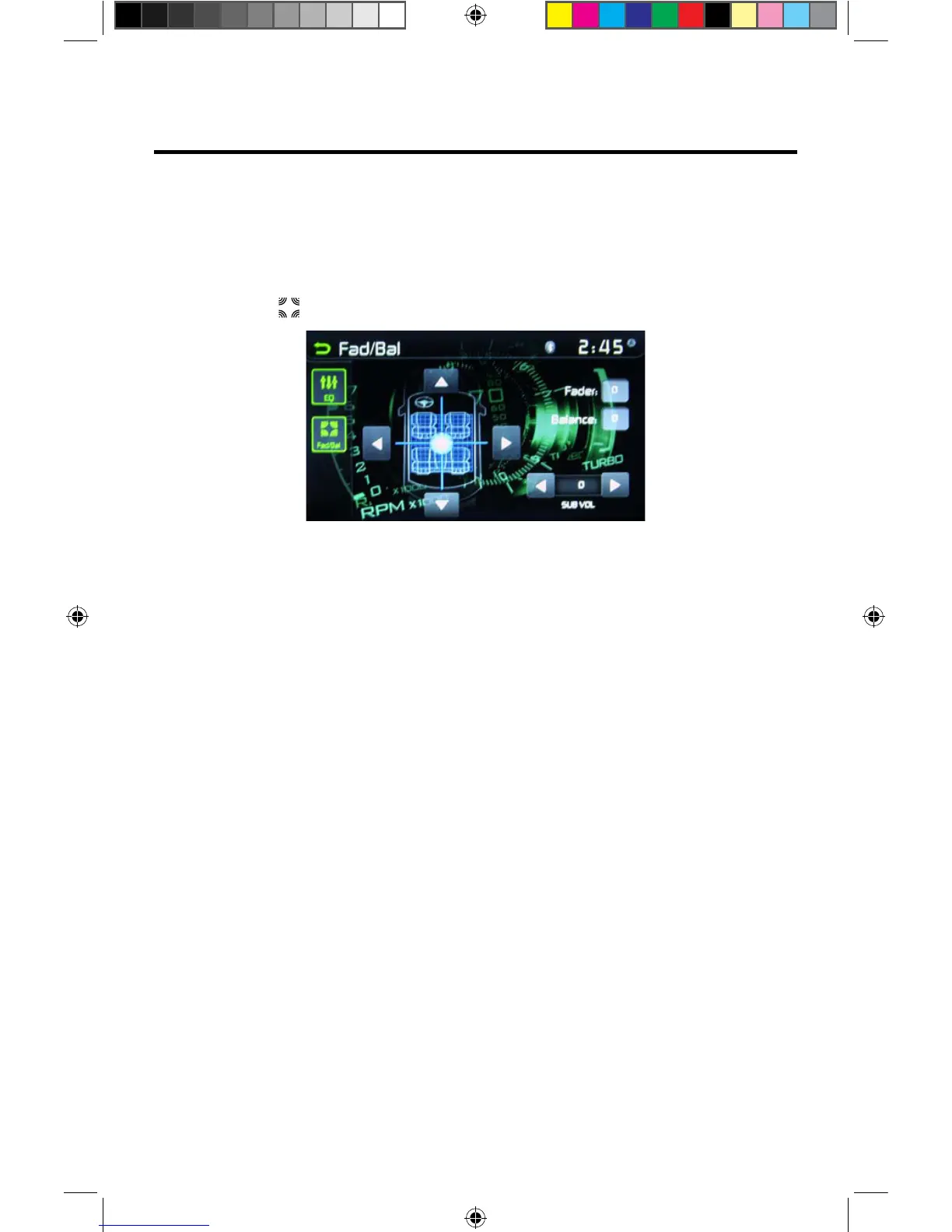and rear of the vehicle. Touch the p or q icons to change the fade control