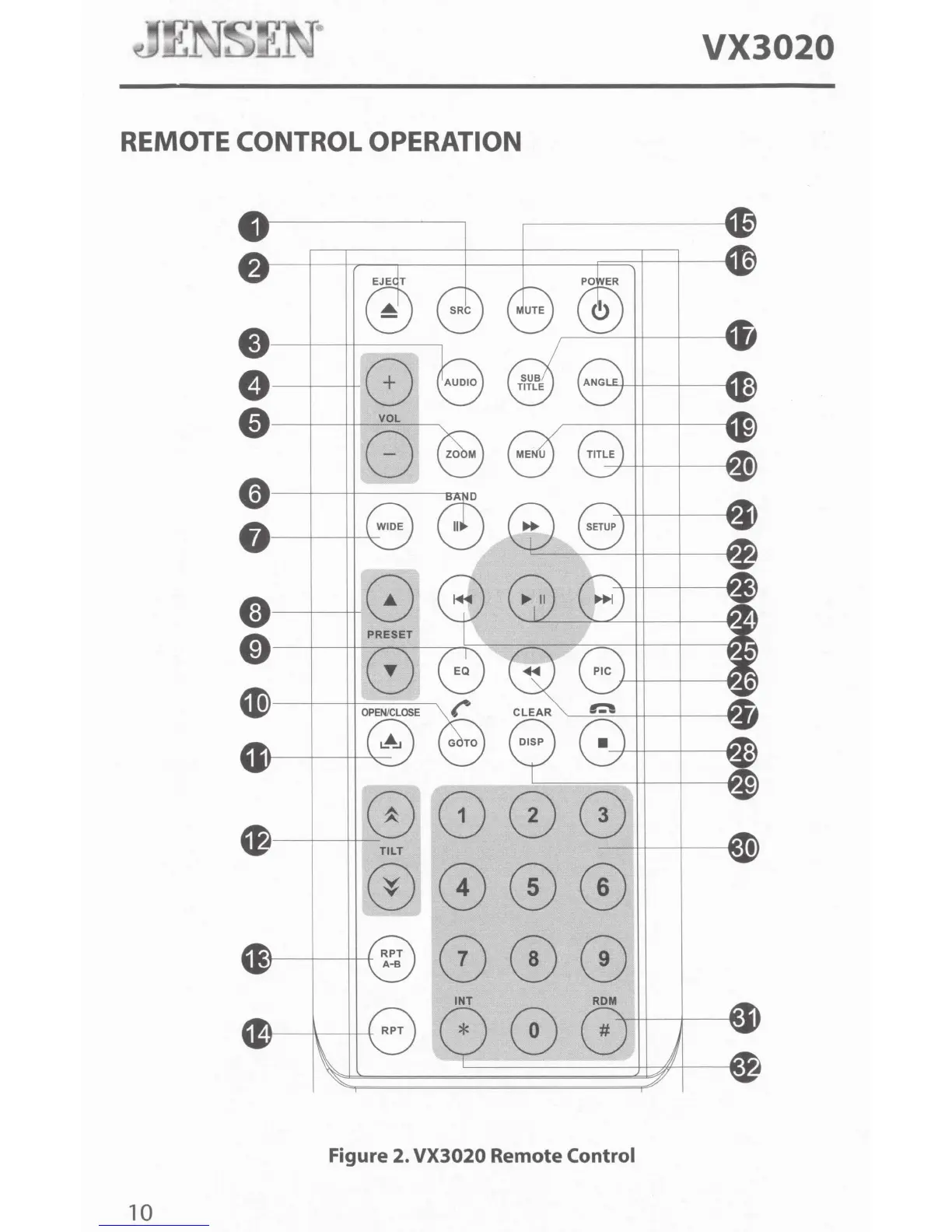 Jensen VX3020 - REMOTE CONTROL OPERATION