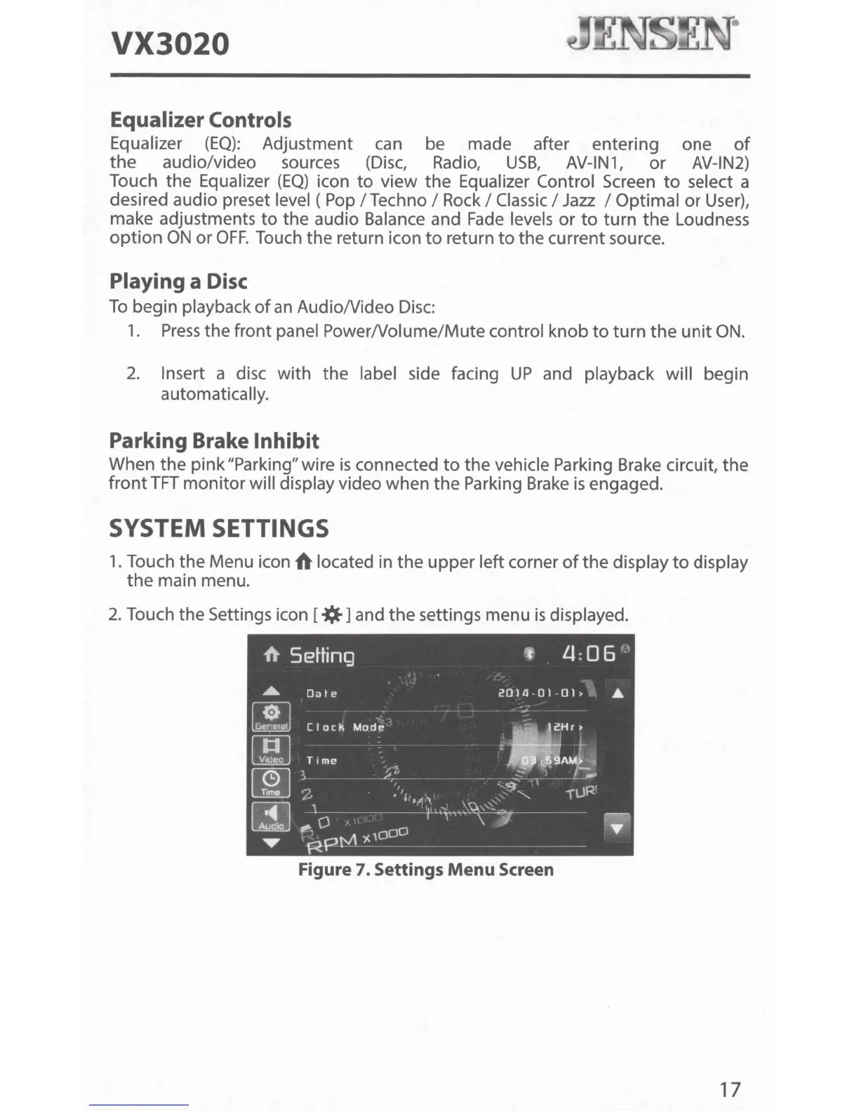 Jensen VX3020 - SYSTEM SETTINGS; Accessing and Navigating System Settings