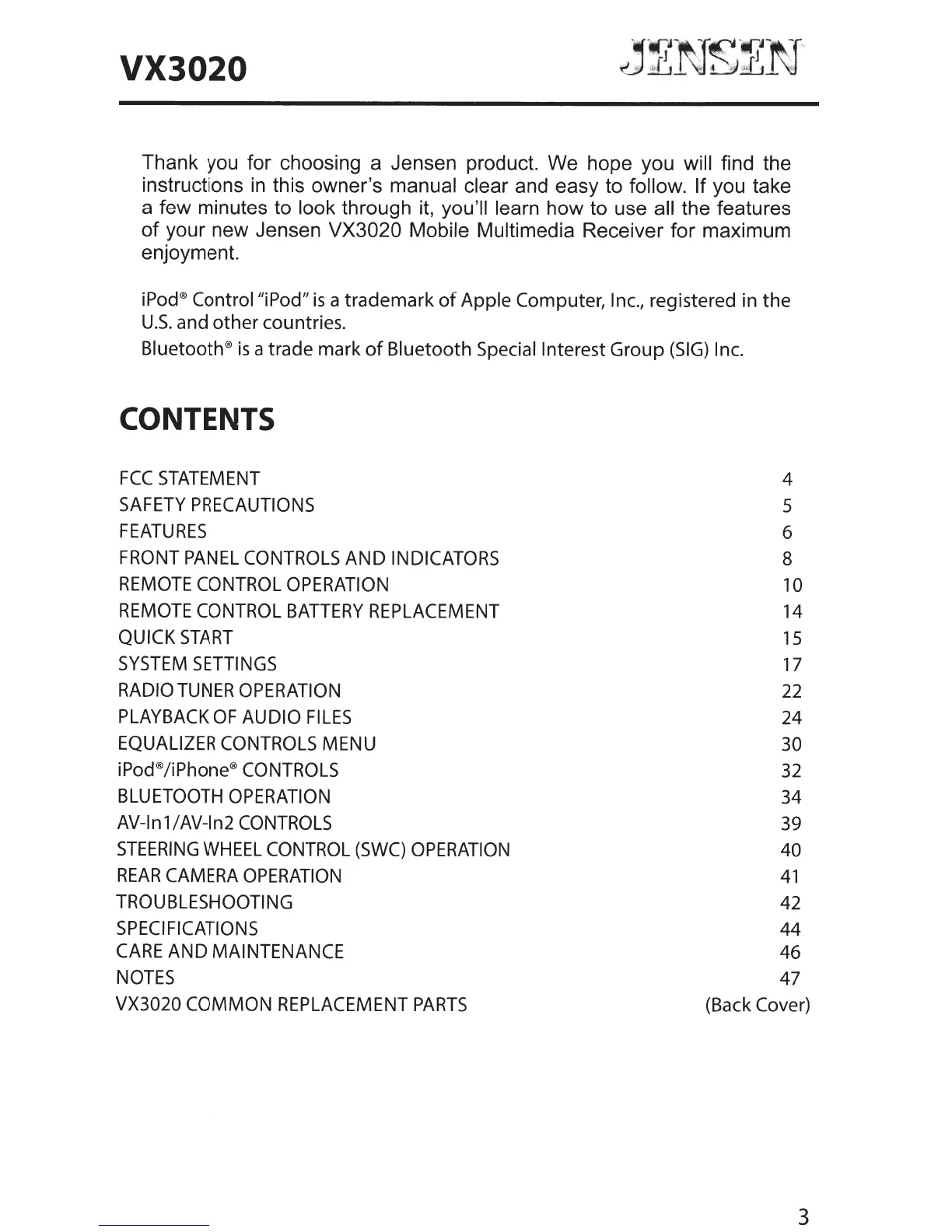 Jensen VX3020 - Page 3