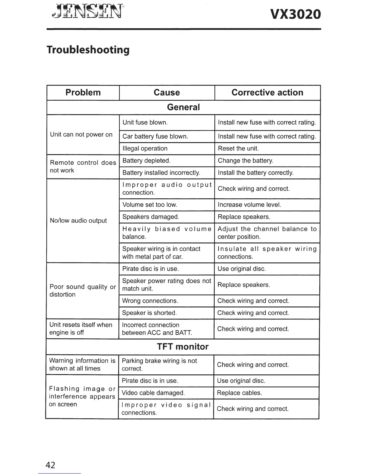 Cause Corrective action