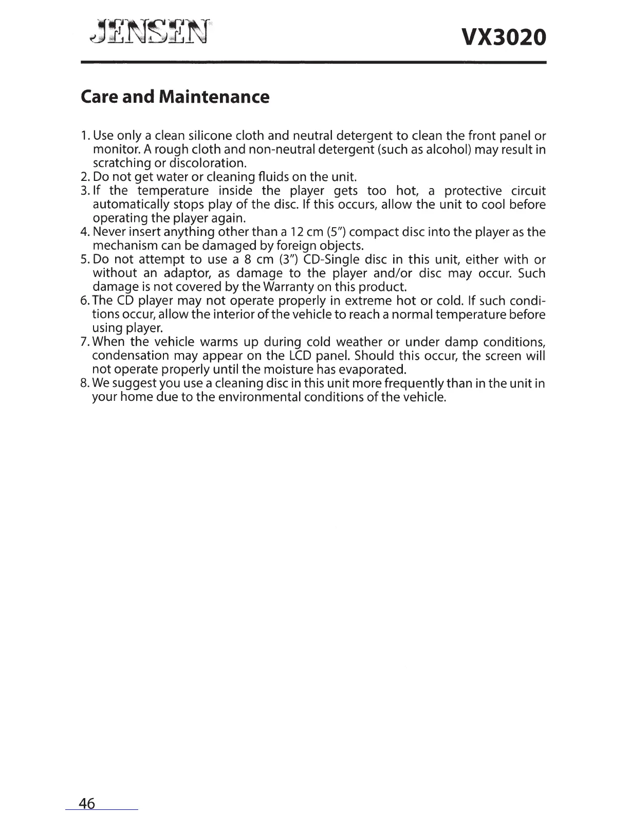the disc. If this occurs, allow the unit