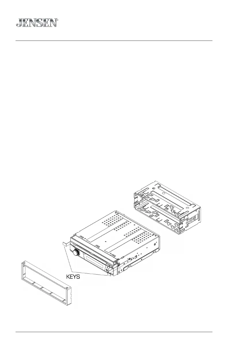 • Insert the supplied keys into the slots as shown, and slide the unit out of the mounting