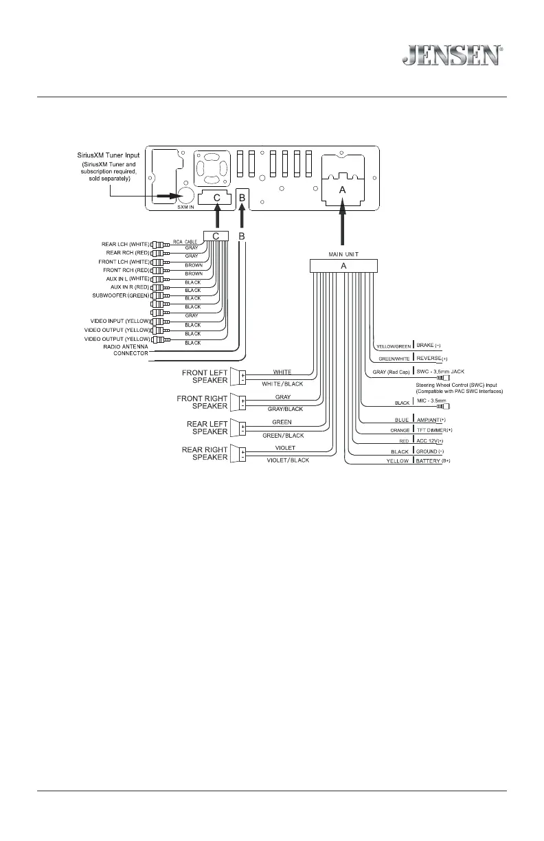 A rear view camera (not included) can be used with the Camera input.