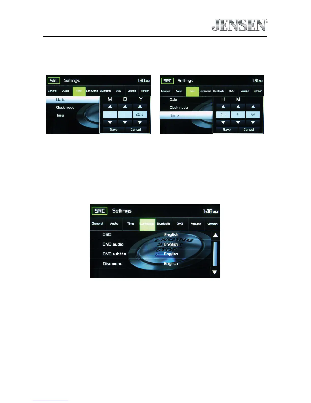 either AM or PM. After setting the time, touch Save. The time will appear to the
