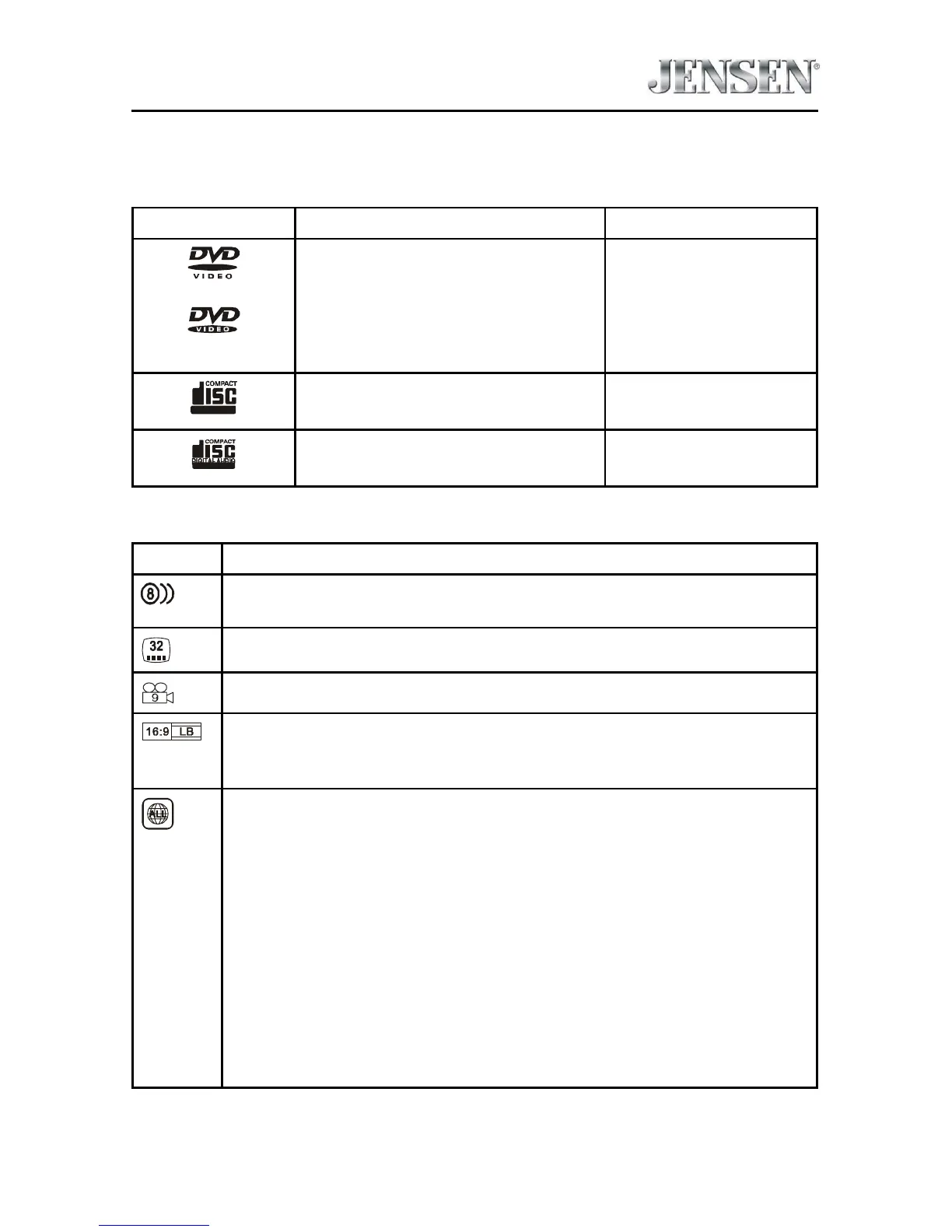 Indicates the region code where the disc can be played.