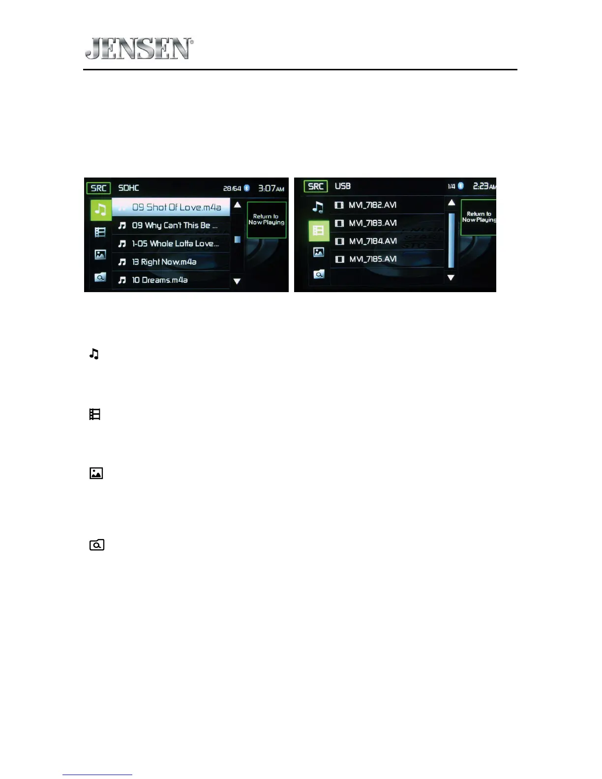 illustrates the audio and video les present in the SD/USB device. The contents are