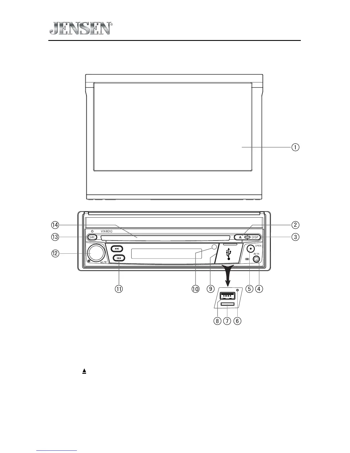Press this button to eject a DVD/CD/MP3 disc. Disc play is stopped, the disc is