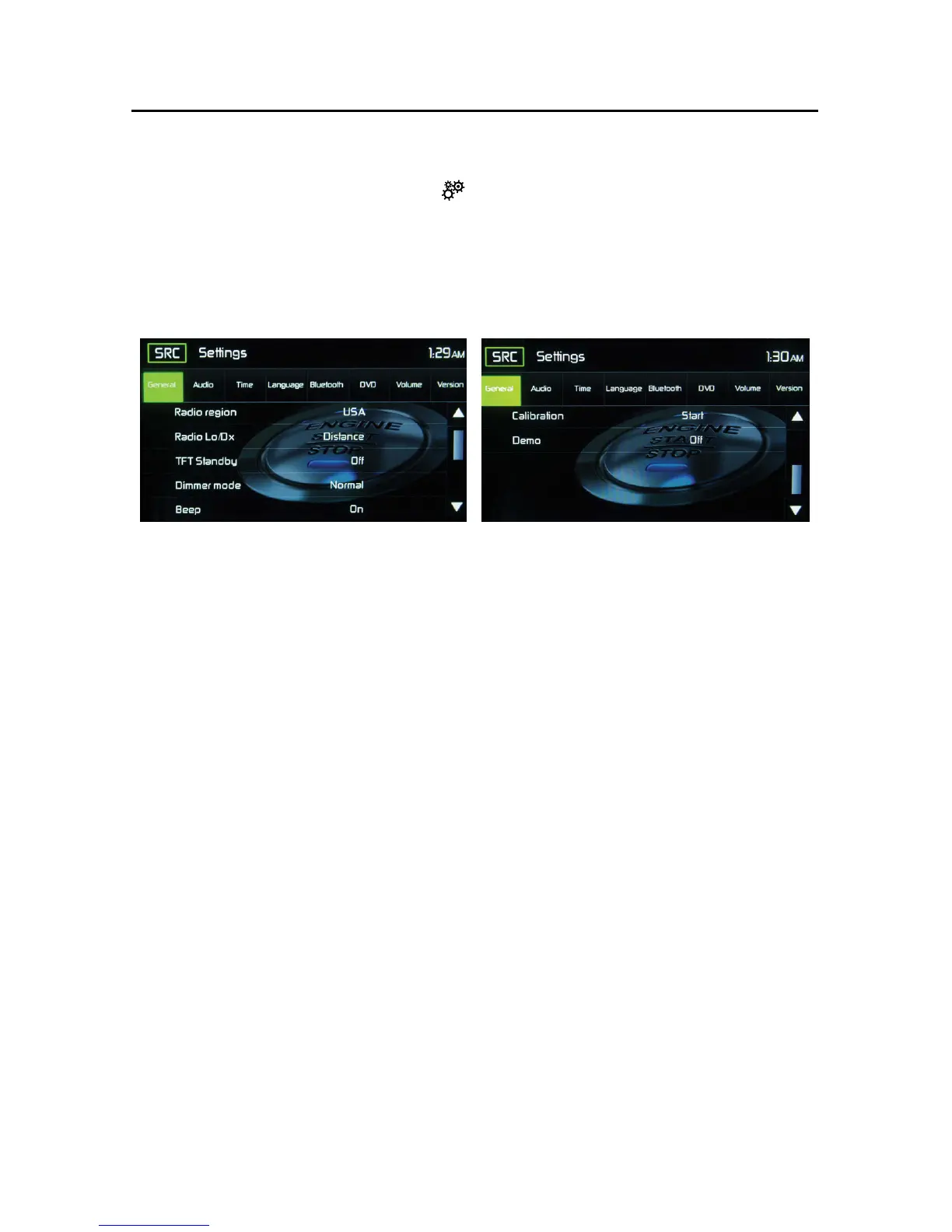 are seven System Settings Sub-Menus (General, Audio, Time, Language, BT, DVD