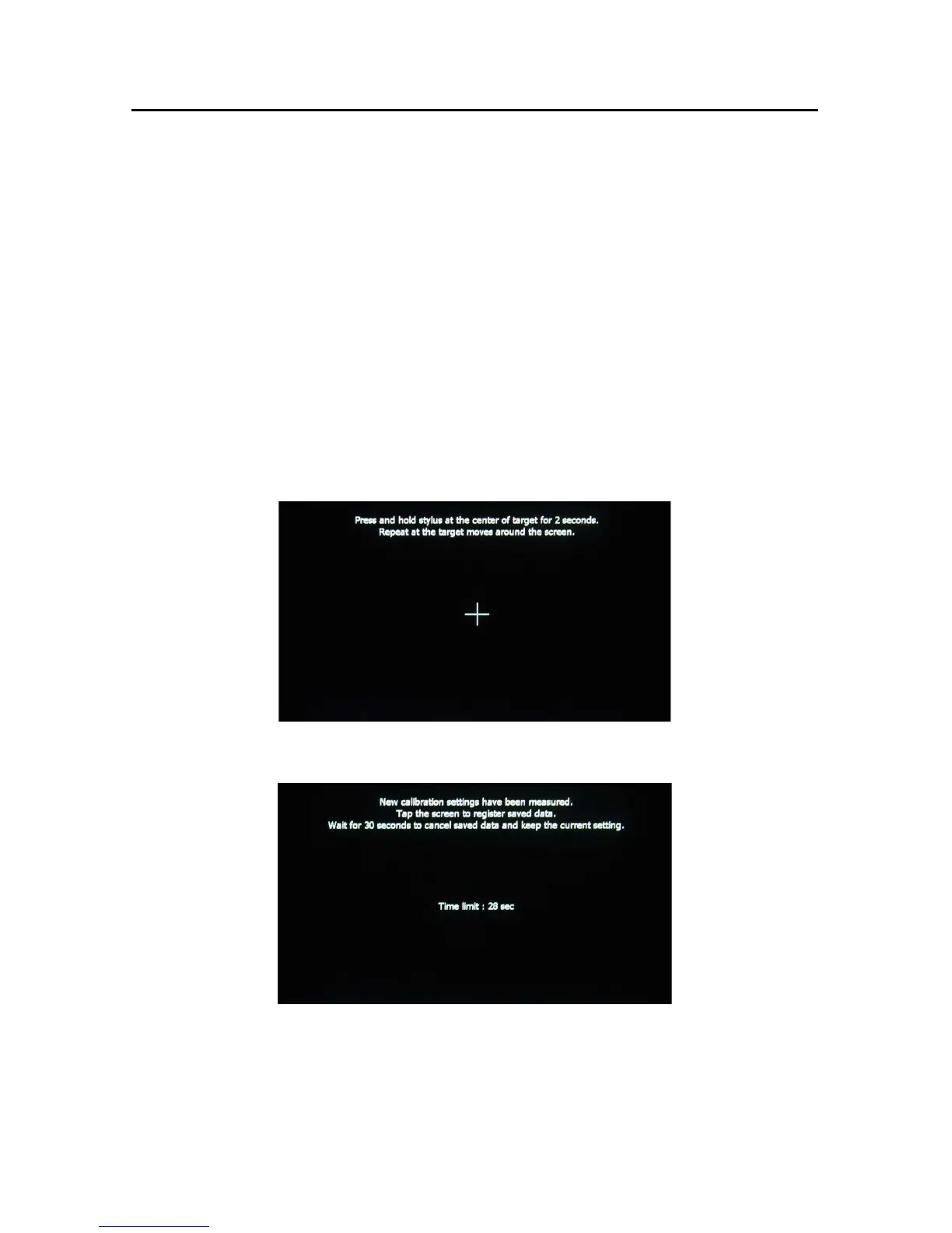 4. If the screen is touched, the new calibration parameters will be accepted. If