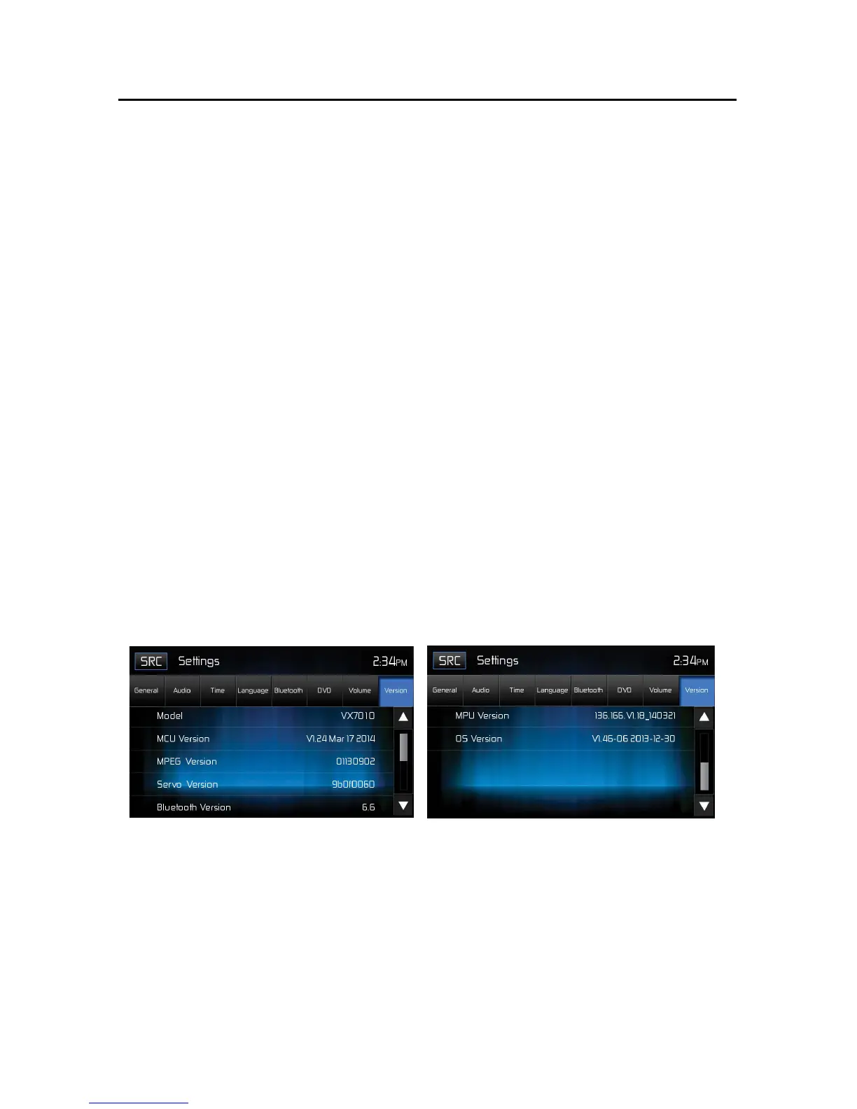 Version Sub-Menu Screen 1 Version Sub-Menu Screen 2