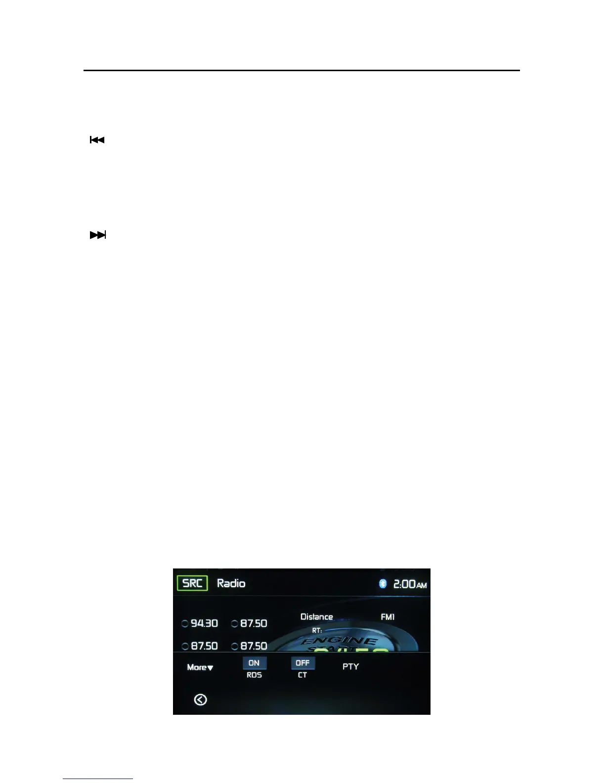 ( ) Seek Down / Manual Seek - Touch this icon to seek the previous available