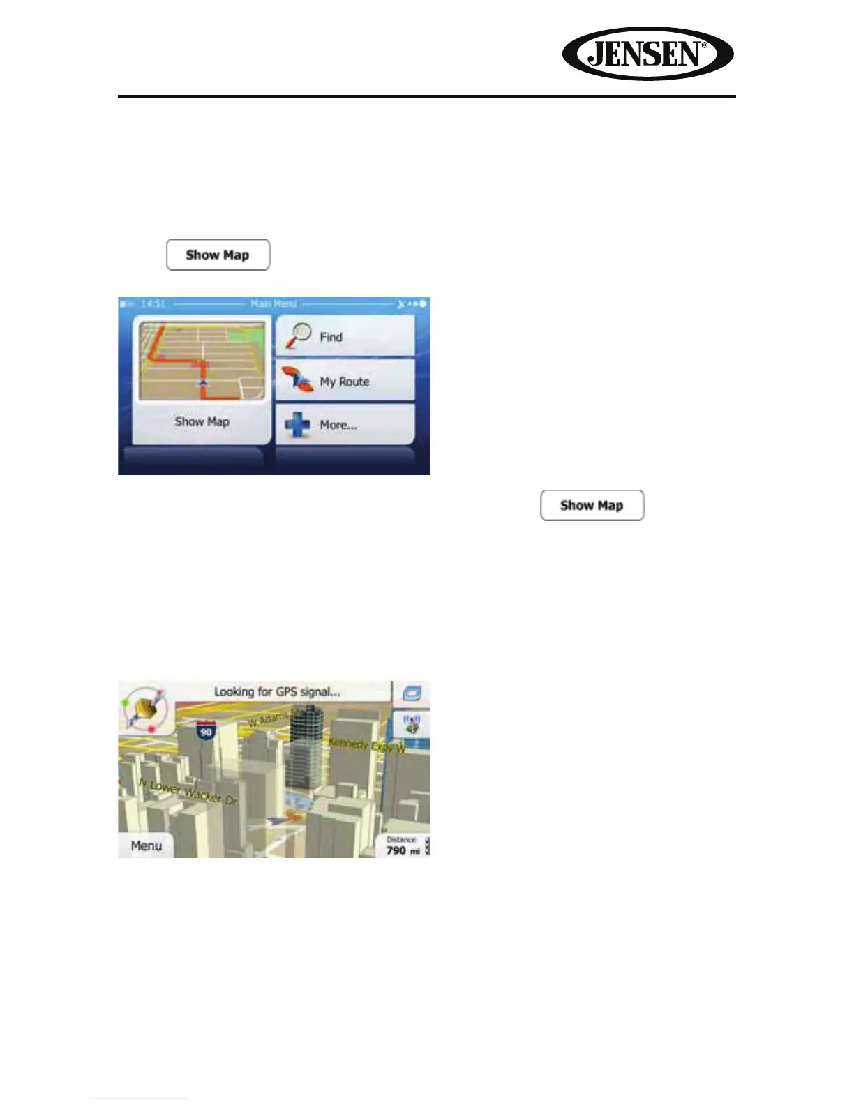 A small live map is displayed on the startup screen, the Navigation Menu, as a part