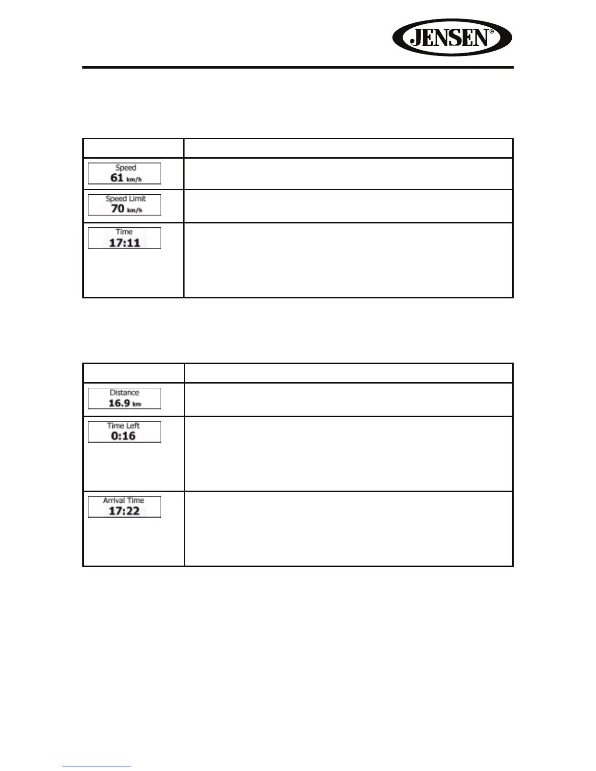 Default data elds when cruising without a destination (tap and hold any of the