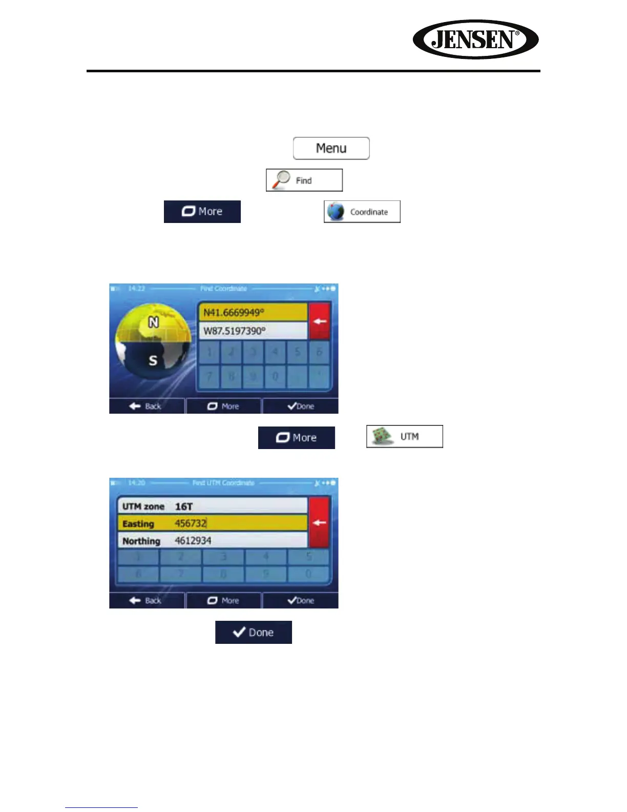 You can also select a destination by entering its coordinate. Do as follows: