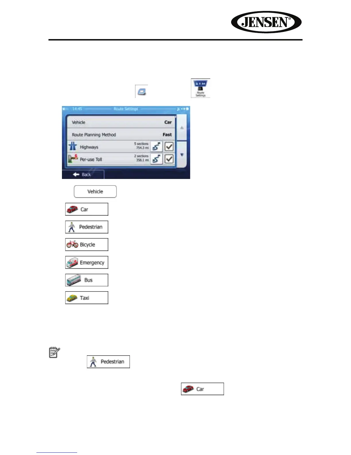 Changing the Vehicle Used in Route Planning