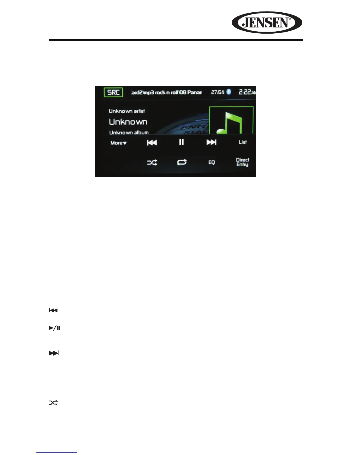 List- Touch this icon to access the list of audio and video les contained on the