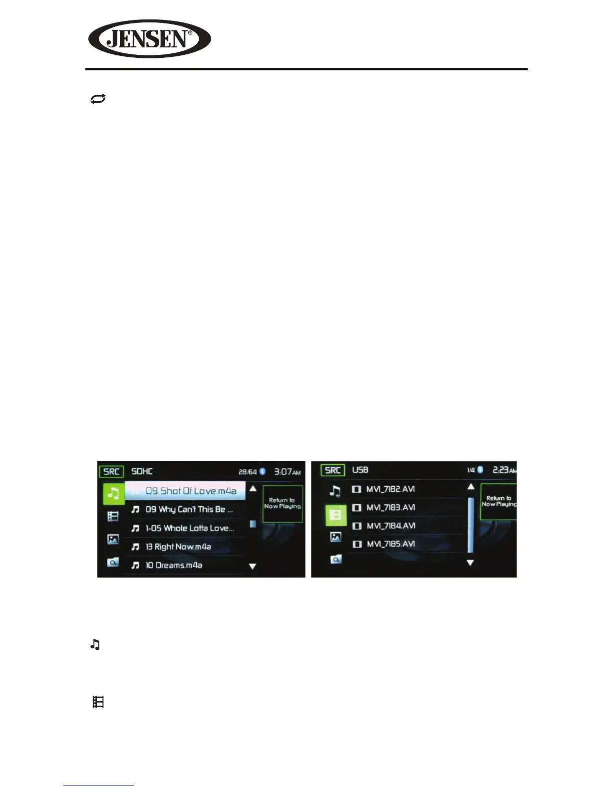 and single track will repeat. The icon on the TFT LCD screen will light and small