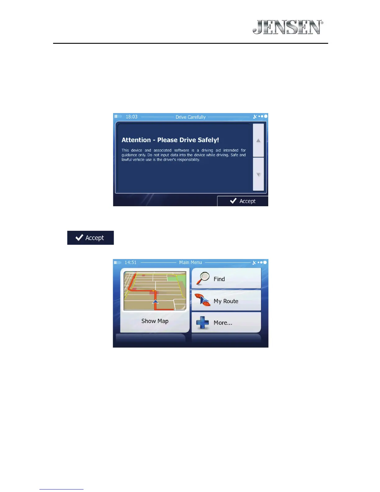 You must agree to the above notice before using the navigation software.