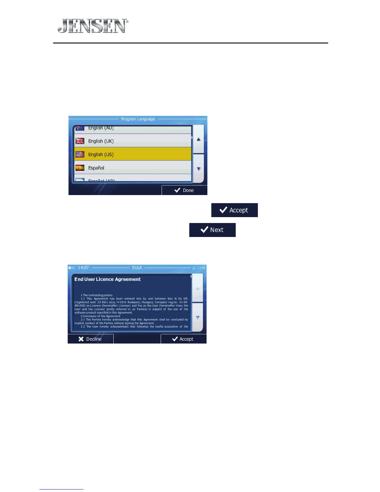 When using the navigation software for the rst time, an initial setup process