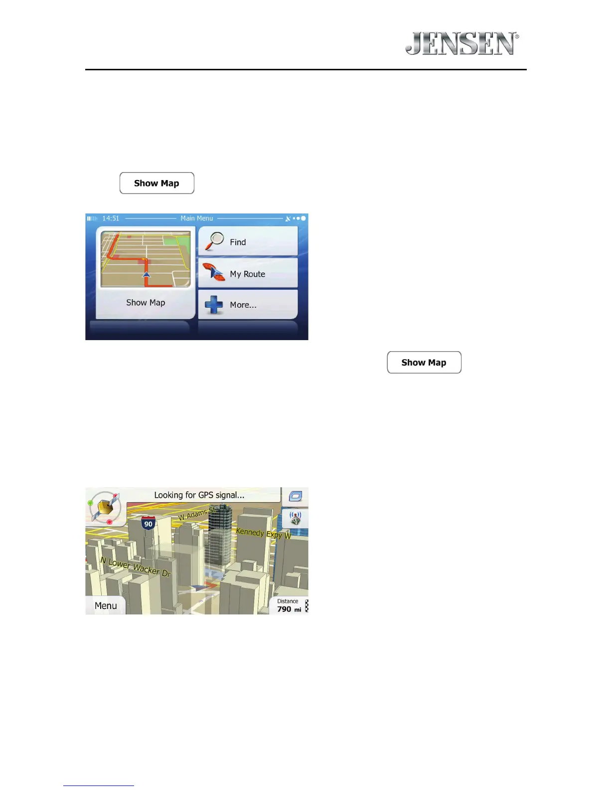 A small live map is displayed on the startup screen, the Navigation Menu, as a part