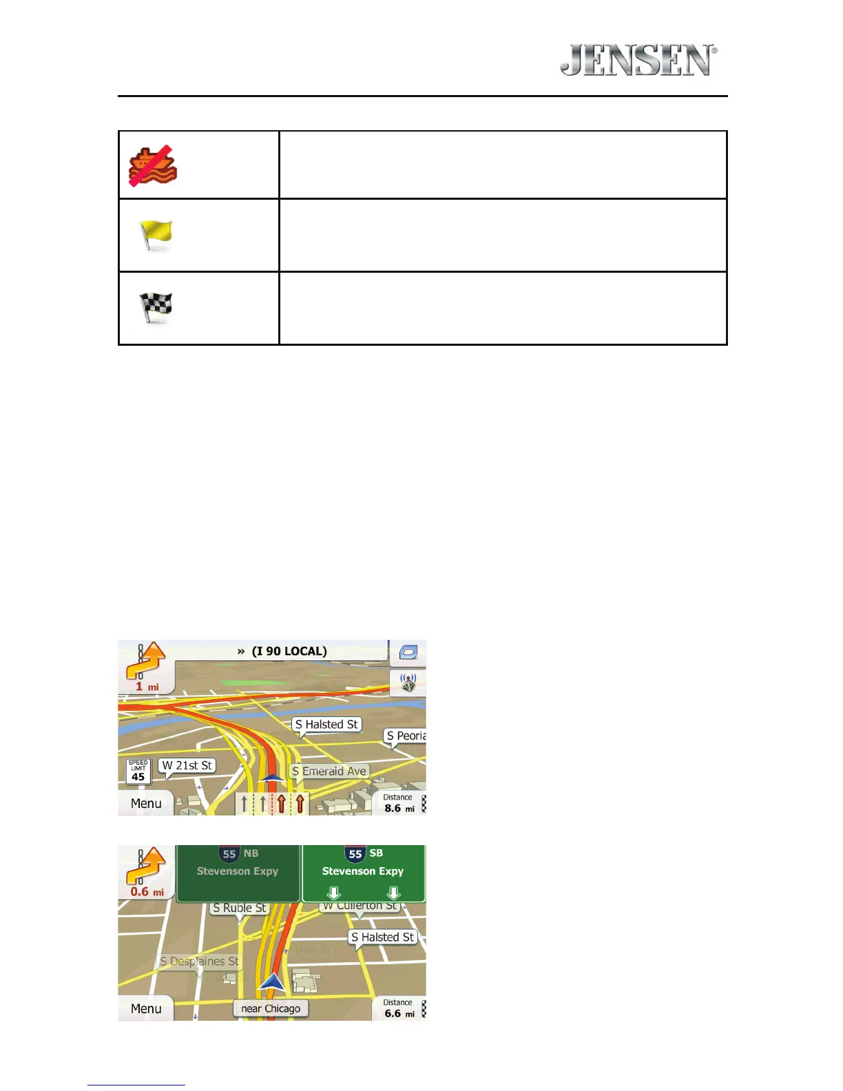 data, iGO primo displays the lanes and their directions using small arrows at the