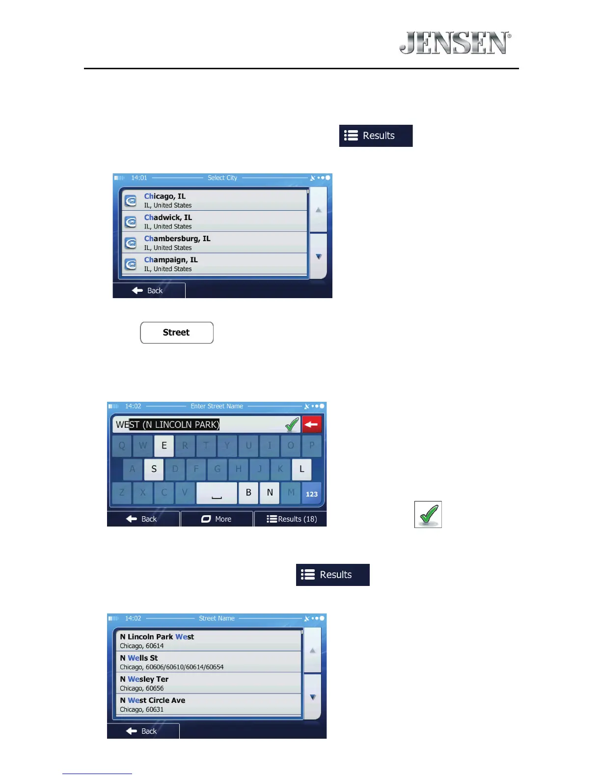 b. Start entering the street name on the keyboard.