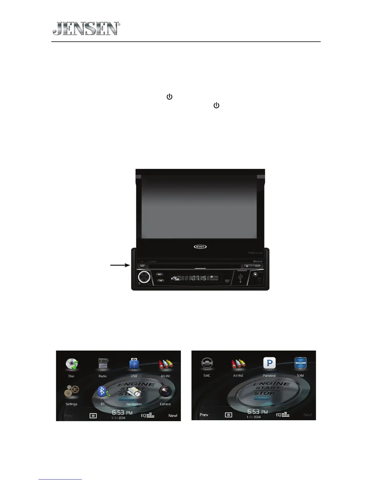 Press the front panel SRC / Power ( ) button to turn the unit ON. To turn the unit