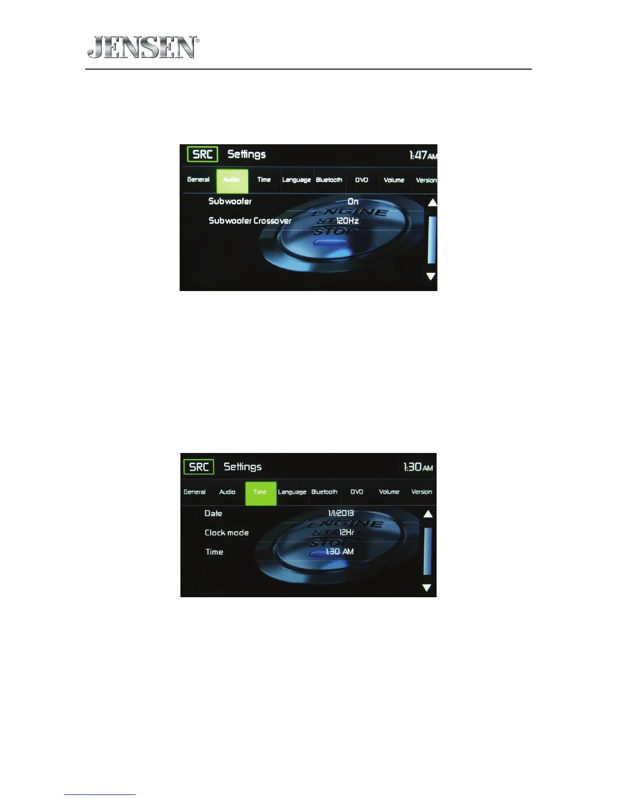Subwoofer Crossover - Touch a crossover frequency (80Hz, 120Hz or 160Hz) to