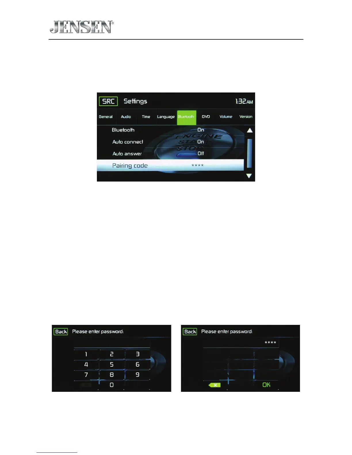 Bluetooth devices to the unit. The factory default pairing code is “0000”.