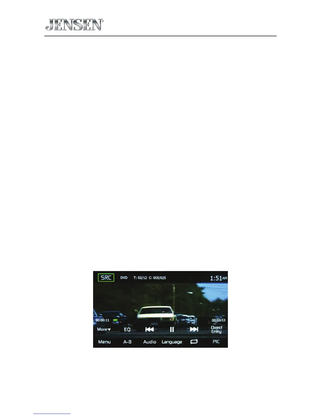 When a DVD is playing, touch the TFT LCD screen to view the DVD main menu. The