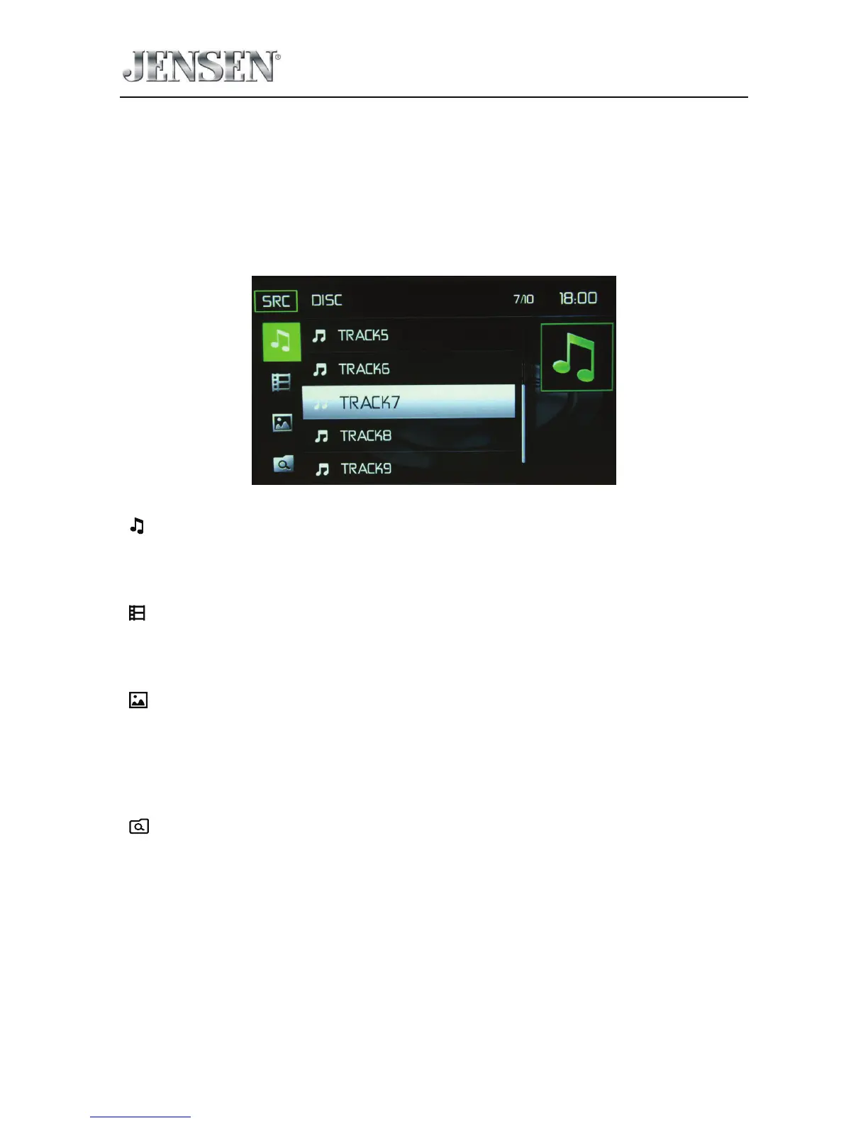 ( ) Audio Files - Touch the audio le icon to display the audio les. Touch the