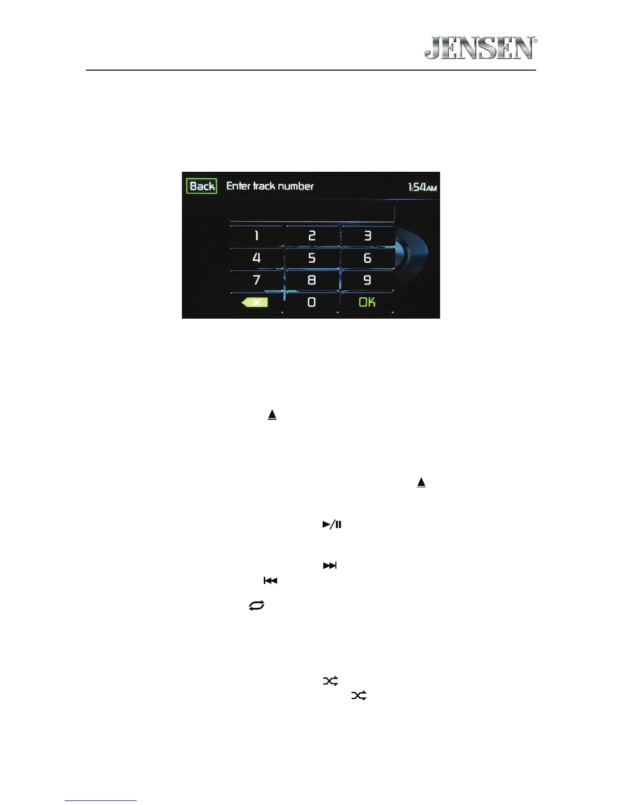 the track numbers touch the OK icon. If a wrong digit is entered touching the