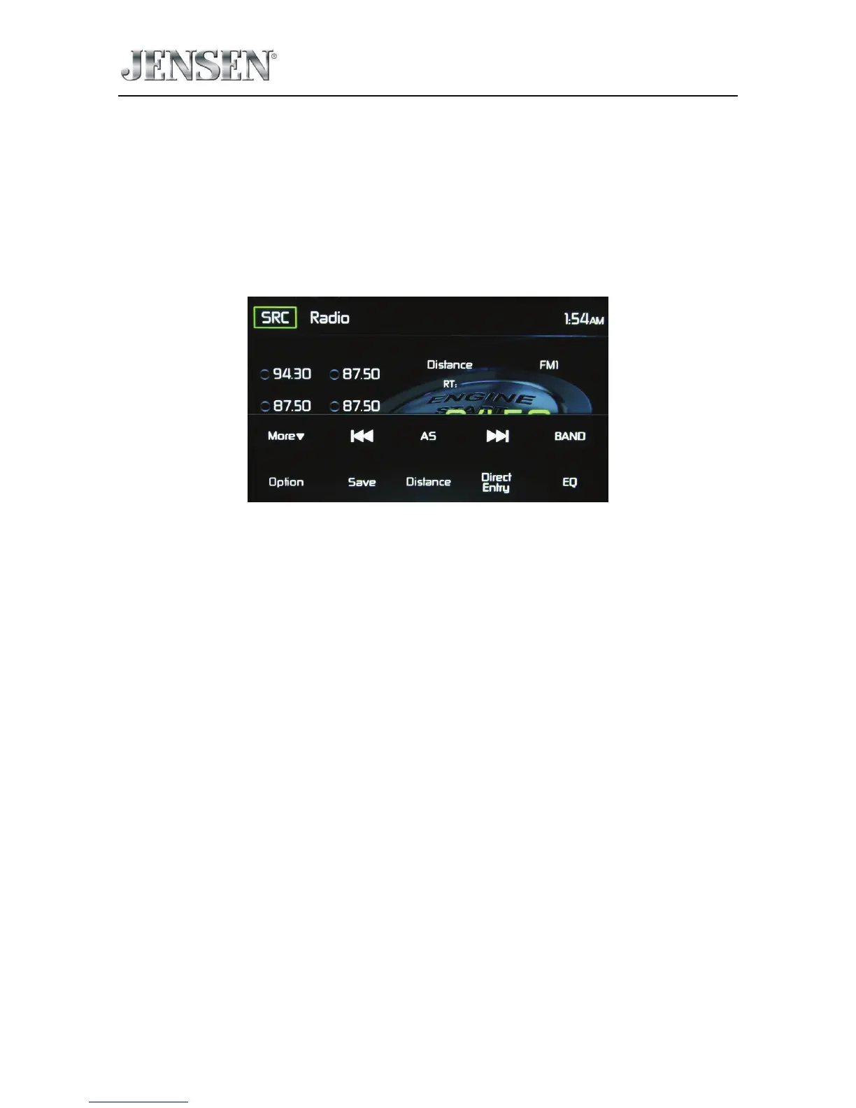 From the main menu screen touch the radio icon. The radio tuner display screen