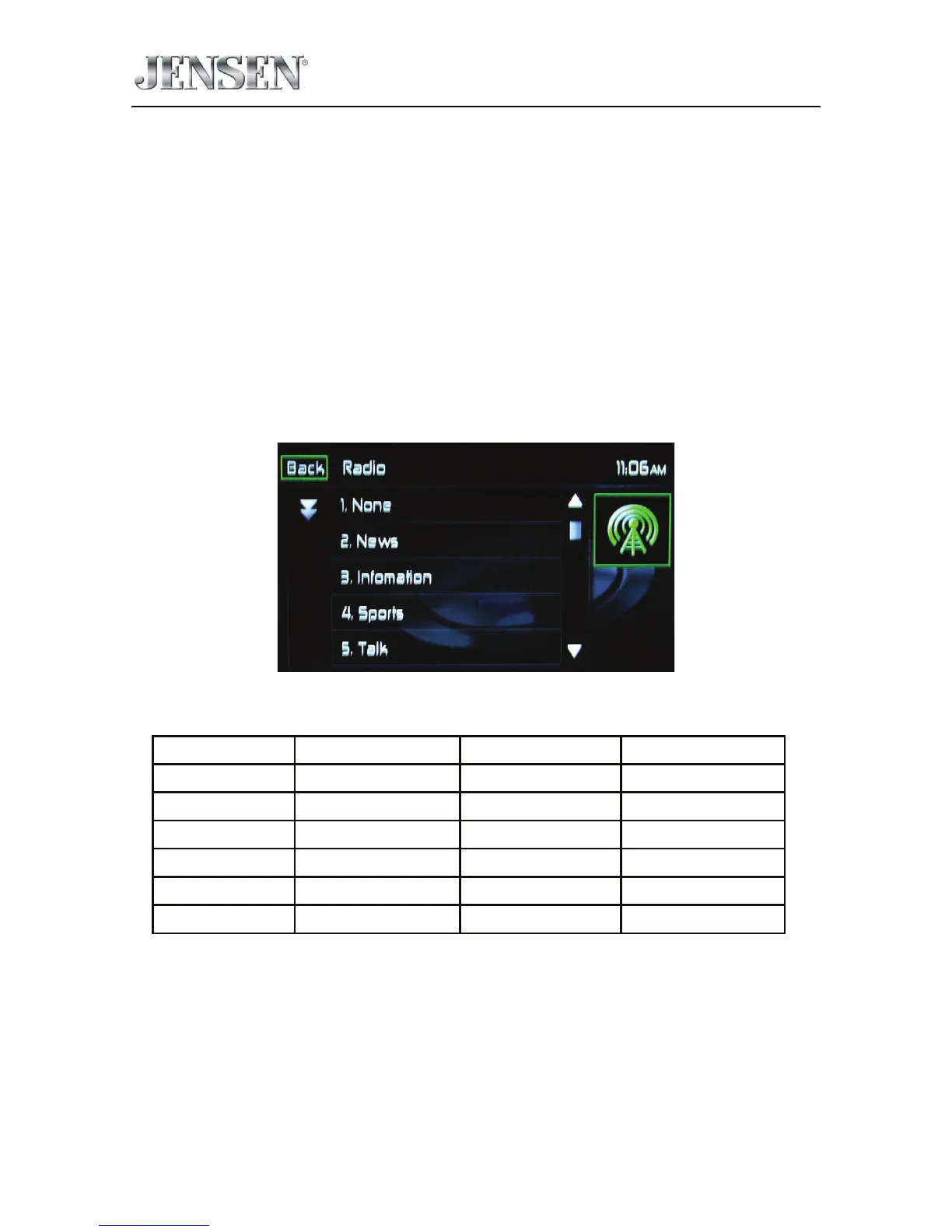 current station such as category (news, sports, talk etc.) Use the scroll bar to select